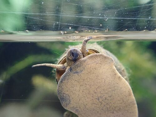 今日はアジメドジョウの展示だけ…!と思って駆け下りてたのですが。田んぼ水槽でガラス面にもきゅううううううってなってるオオタニシと目が合ってしまいました。ズッキュン!そう、目はここみたいです。おちょぼ口になってるw 可愛いですねぇ。