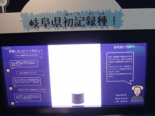 今月のマンスリー水槽はちょっと変わったかんじです。テーマは陸貝・カタツムリ。 「○○初!」とかに弱いんですよね~。なんだか自分でも探してみたくなってきます。解説の愛知みずほ大学の川瀬基弘先生、どこかでお聞きした名前だなぁと思ったら2月に名古屋…