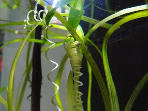 タナゴ水槽の水草の、このネジネジしたの気になります。電話の・・・って言っても平成の子はわかんないかも?先っぽをよく見ると、花がついてました。この水草、セキショウモって言うそうですが、花茎を水面に伸ばして、水面で受粉すると、雌花の花茎が螺旋状に…