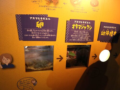 企画展「新ヒキガエルのすすめ」が最終進化形になっていました!繁殖シーズン始まりました。ということで、実物の「卵」と「オタマジャクシ」の展示開始です。当初はこんな感じでパネルになっていました。オタマジャクシの方の写真は常設の展示水槽かな。解…